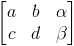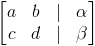 Ocultando la matriz que contiene las variables, podemos expresar lo anterior como: