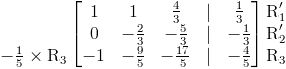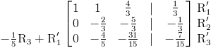 Luego pasamos a la fila 3; aquí multiplicamos la fila por -1 ⁄ 5 y luego agregamos el resultado a la fila 1 para poner a cero el primer elemento.