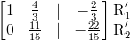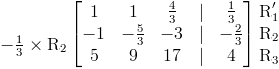 Para la segunda fila, podemos lograr esto multiplicando primero por -1 ⁄ 3 y luego agregando el resultado a la fila 1.