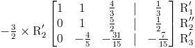 Necesitamos que el elemento principal en la segunda fila también sea uno. Obtenemos este resultado multiplicando la segunda fila por -3 ⁄ 2 :