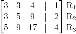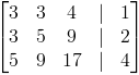 El primer paso es convertir tres sistemas variables de ecuaciones en una matriz aumentada de 3×4.