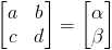 Los dos sistemas de ecuaciones variables anteriores se pueden expresar como un sistema matricial de la siguiente manera
